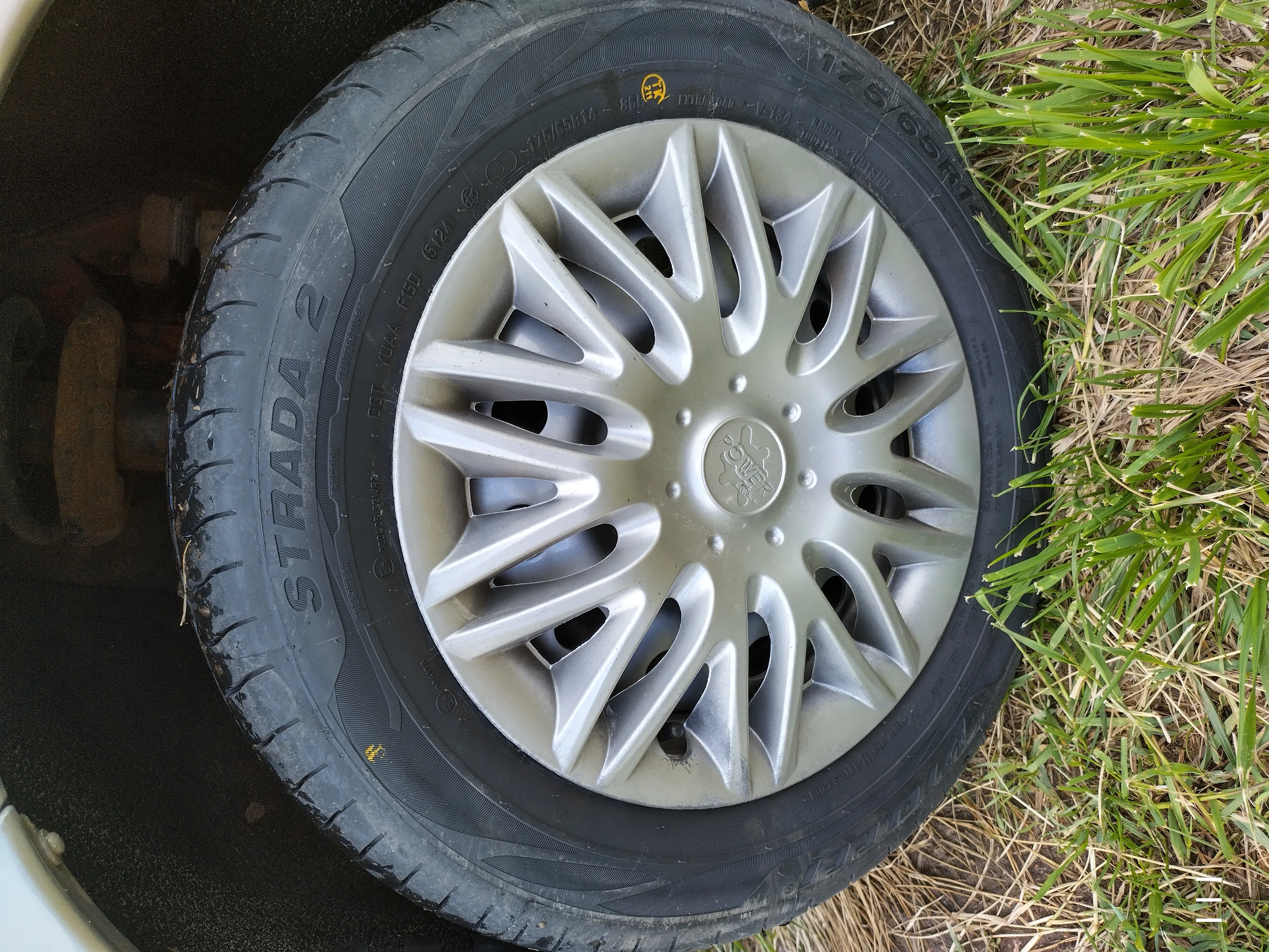 1VIATTI – торговая марка2www.viatti.ru – сайт изготовителя3Знак официального утверждения с номером страны, выдавшей сертификат и соответствующим номером сертификата4STRADA 2 – торговое наименование шины5DOT YAUD F90W (Department of transportation) соответствие требованиям США6Дата изготовления, состоящая из четырех цифр, из которых первые две обозначают порядковый номер недели, а вторые две - год изготовления7Логотип производителя8205/55R16 – обозначение типоразмера шины994 – индекс нагрузки – цифровой код, обозначающий максимальную нагрузку на шину10V – категория скорости – буквенный код, обозначающий максимальную скорость шины11EXTRA LOAD – обозначение шин с повышенной несущей способностью12V-134 – модель шины13TUBELESS – обозначение бескамерного исполнения шины14RADIAL – обозначение радиальной конструкции шины15OUTSIDE – внешняя сторона шин с асимметричным рисунком протектора, внутренняя сторона шины обозначается надписью «INSIDE»16ТУ – обозначение нормативного документа, по которому изготавливается шина17MADE IN RUSSIA – название страны-изготовителя18MAX. LOAD 670 Kg (1477 LBS); MAX. PRESS 350 kPa (51 PSI) – максимальная нагрузка в кг (фунтах) при максимальном давлении в шине в кПА (фунтах)19TREAD PLIES: 1 POLYESTER + 2 STEEL + 1 NYLON SIDEWALL PLIES: 1 POLYESTER – применяемые материалы и количество слоев в каркасеНаведите курсор на цифру, чтобы узнать подробнее